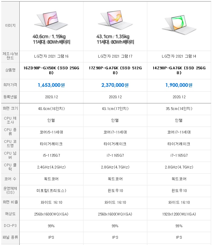 2021 LG 노트북 그램(gram) 추천 순위 알아보기